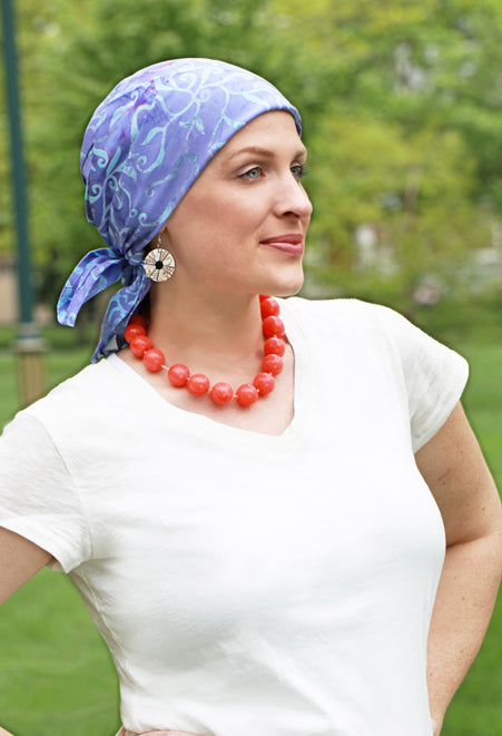 Created by Nicki Serquinia, ovarian cancer thriver and hairdresser, providing beautiful, comfy headwear for chemo patients and women with hair loss since 1991.