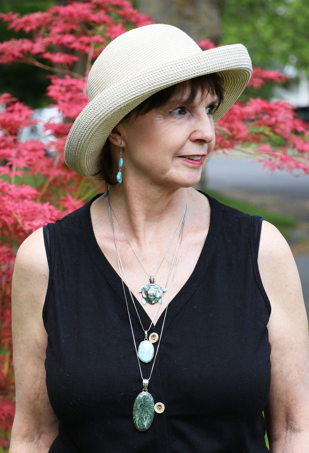 A cute summer hat made for women with small heads and features. Packable, crushable, travel hat for women on the go. Dress it up or dress it down to suit your mood.