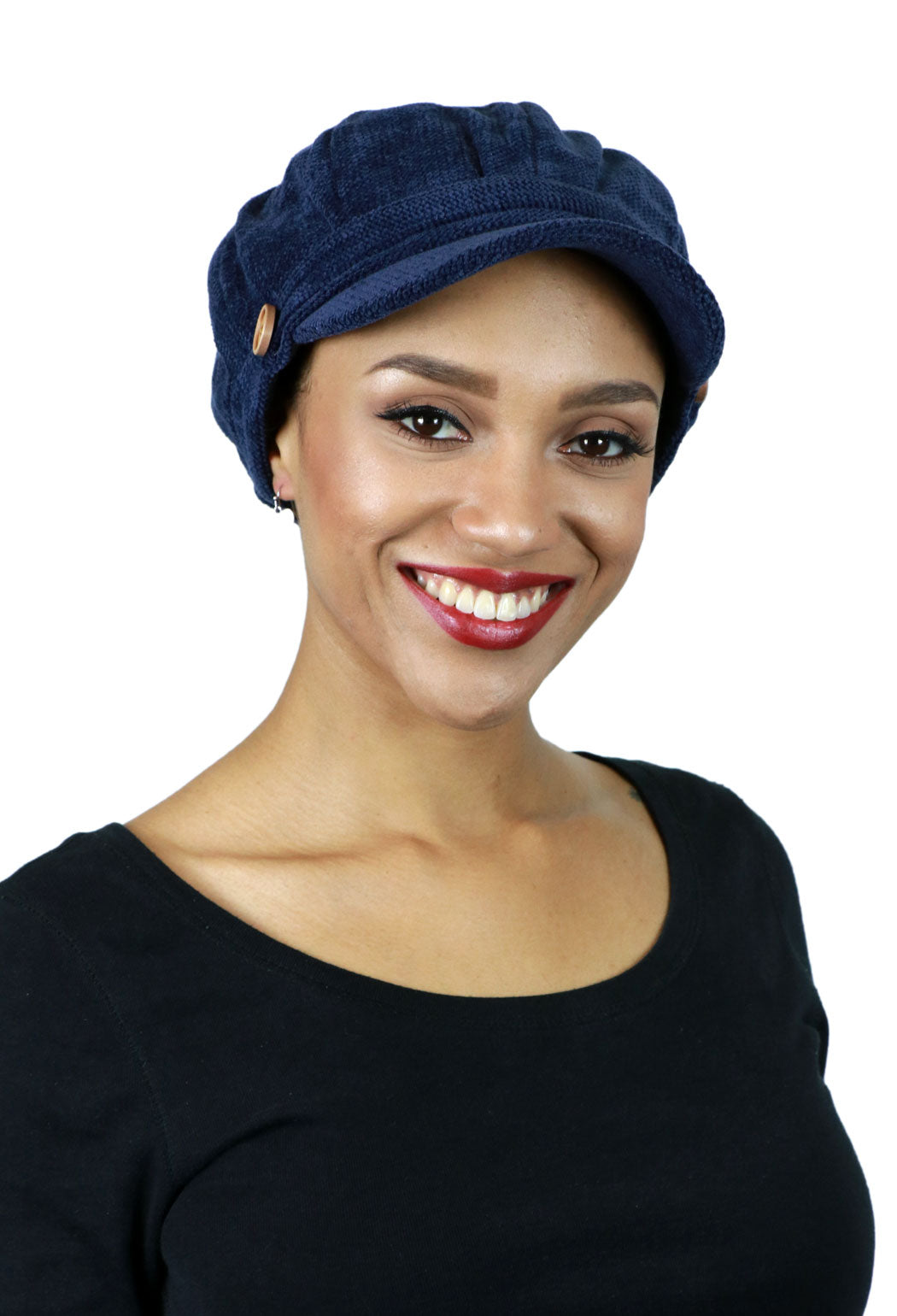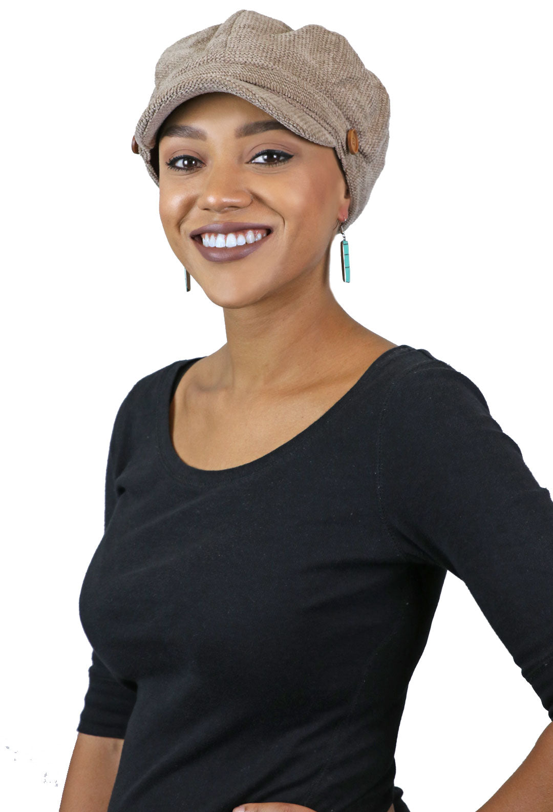 Our Dublin chenille newsboy cabbie hat for women is a chic, stylish fall and winter hat that's perfect for cancer patients and women with medical hair loss. A great choice in chemo headwear.