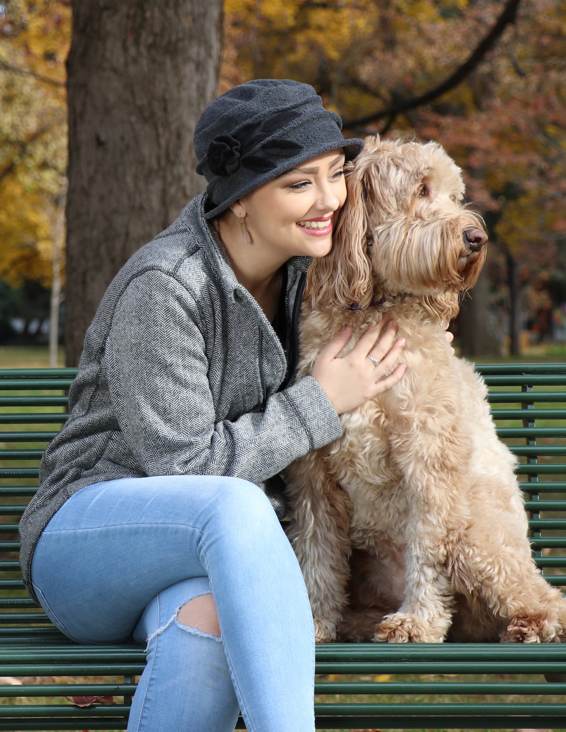 Lady Rose luxury fleece hat for women makes a perfect hat for cancer patients and women with medical hair loss. Snuggly warm and cozy, soft on bald and sensitive heads.