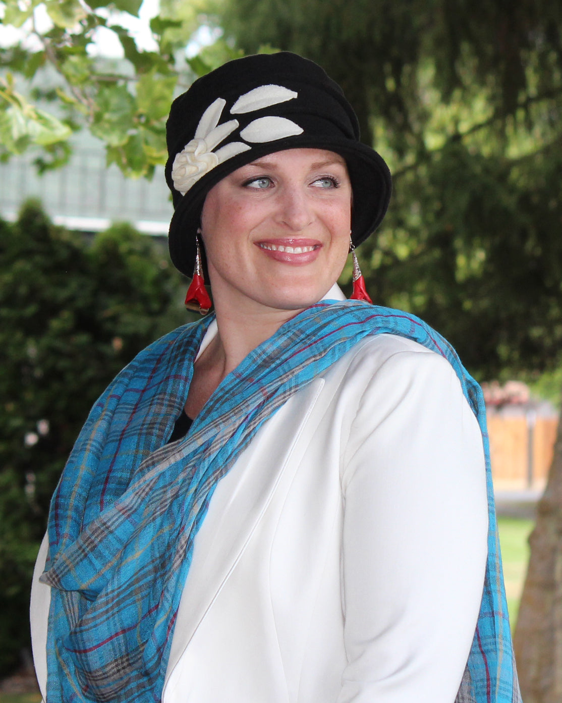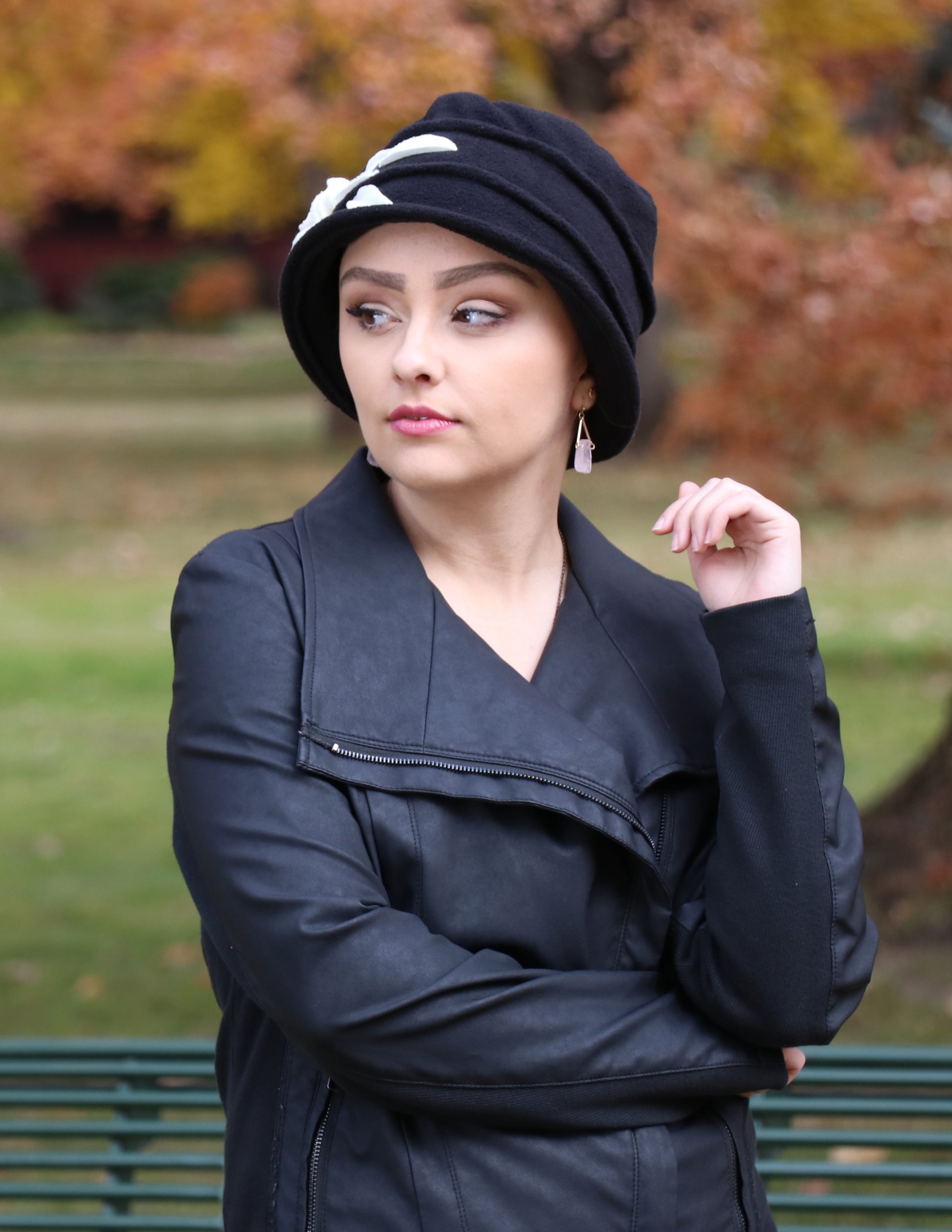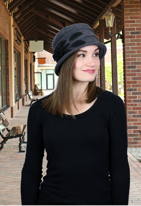 A vintage hat style straight off the set of Downton Abbey, Lady Rose makes a great winter chemo hat for women. Outside seams and rose detail add a touch chic for any occasion.