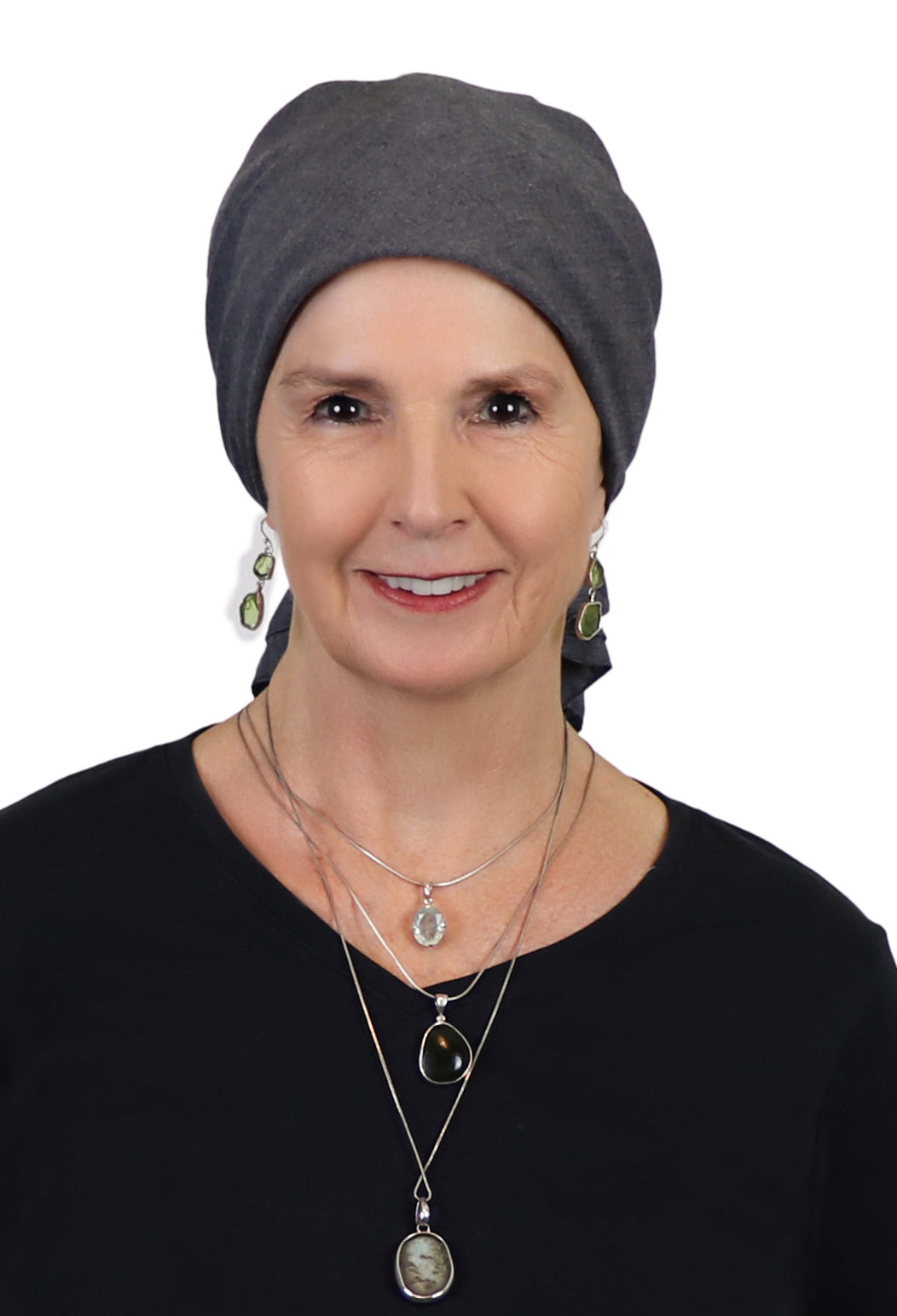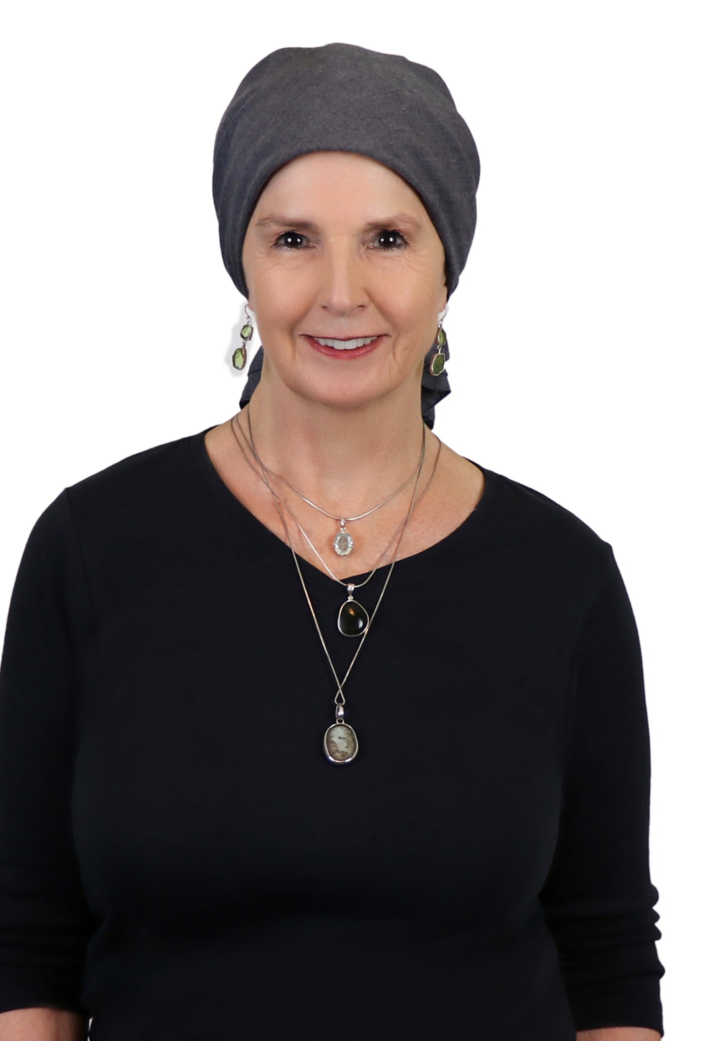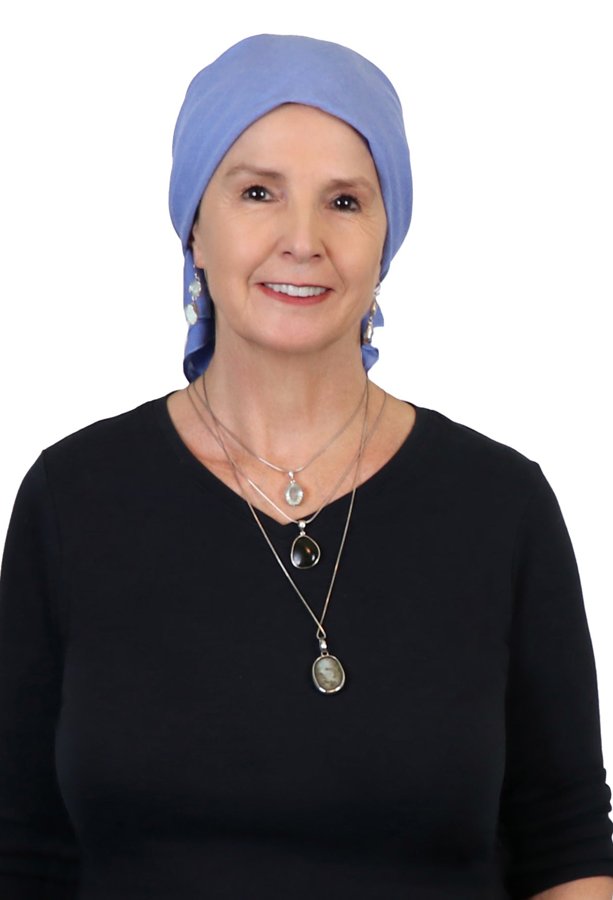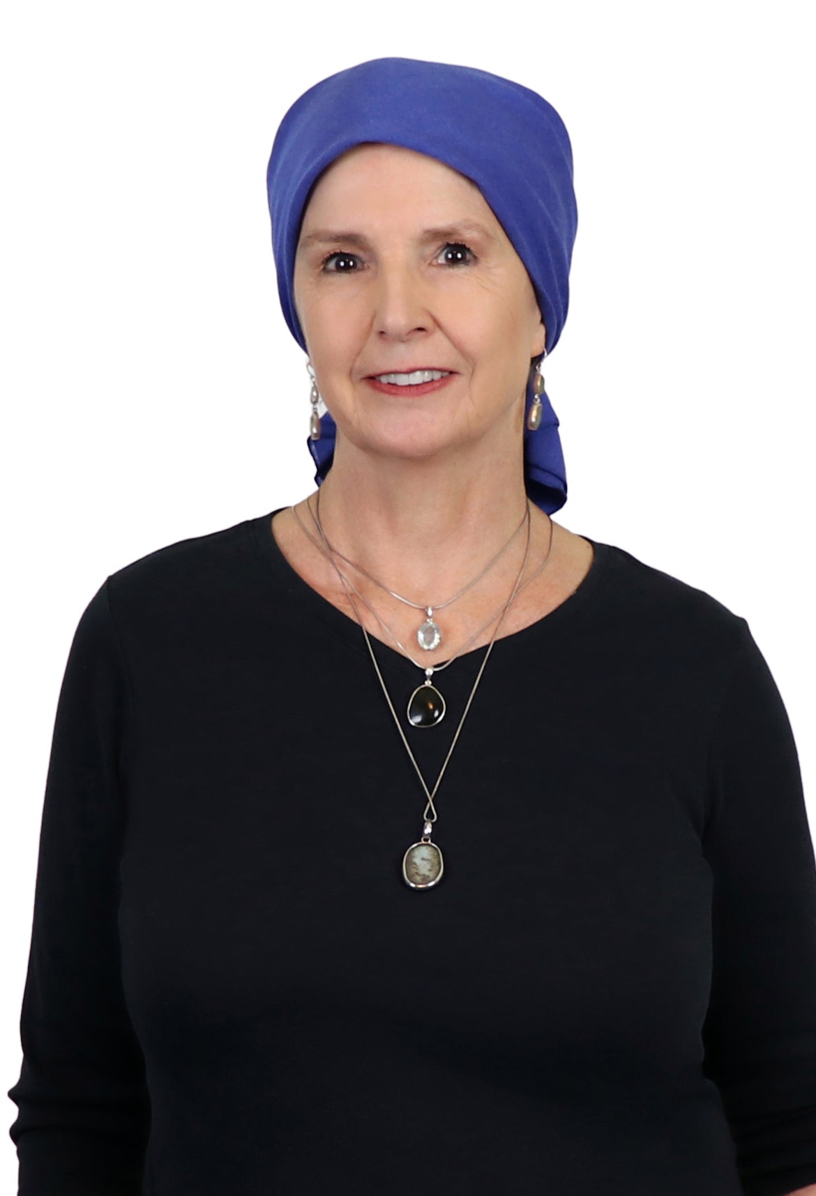 Supernova fabric uses two colors of thread for a slightly heathered look. These lightweight, breathable cotton head scarves are soft and comfy on tender heads.