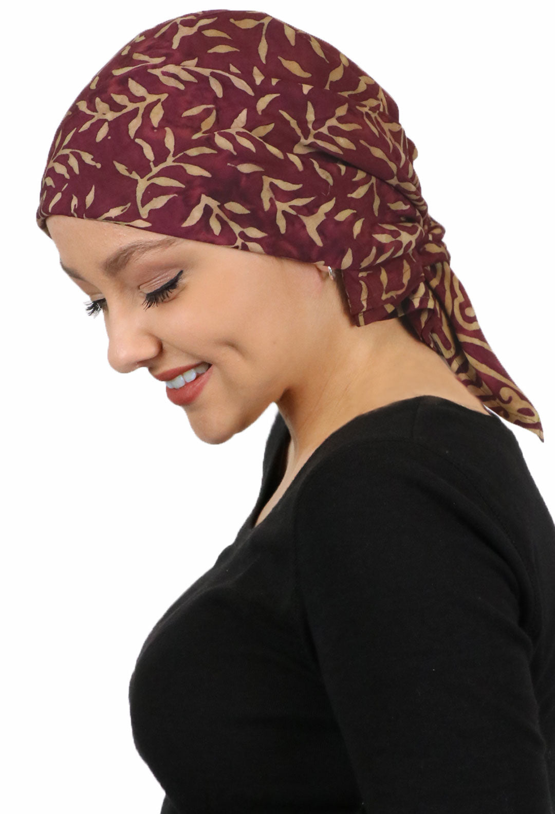 THESE AUTHENTIC BALI BATIK HEAD COVERINGS are perfect for chemo caps, bad hair days, boho head wraps, or religious head covering. Hand wash, air dry. Available only from Hats, Scarves & More