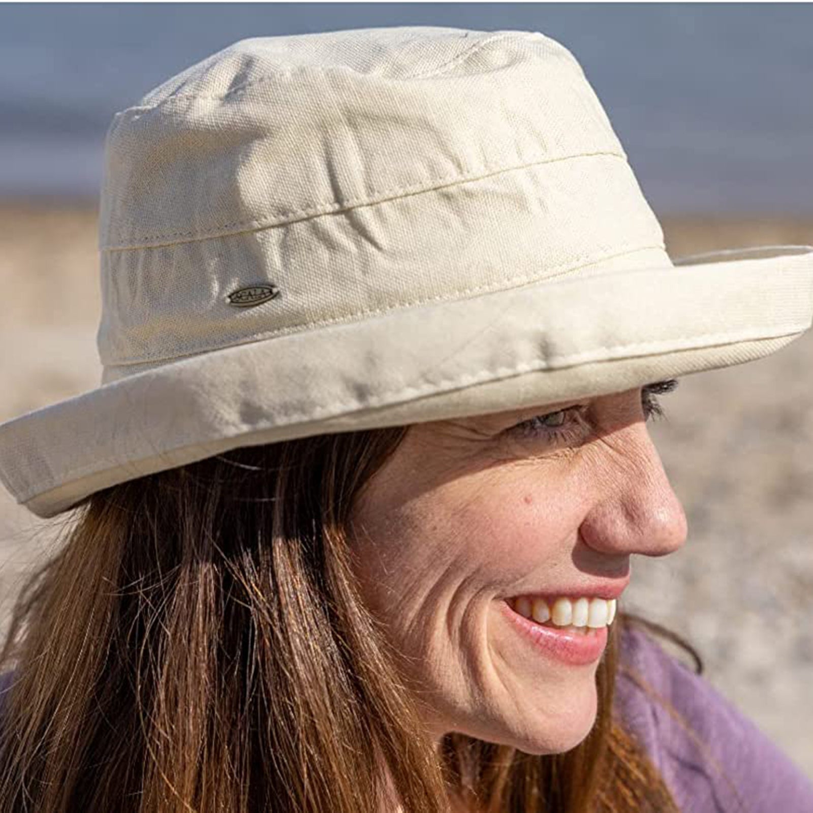 Catalina Small Brimmed Sun Protection Hat for petite women with small to medium heads. This sturdy, canvas sun hat for women is 100% cotton and certified 50+ UPF for maximum sun protection.