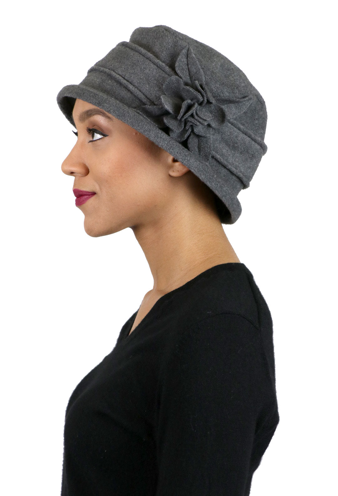 Get the look of a 1920s wool cloche hat without the itch. This lightweight fashion hat for women is warm and cozy without being bulky. Sweet flower detail for a vintage look